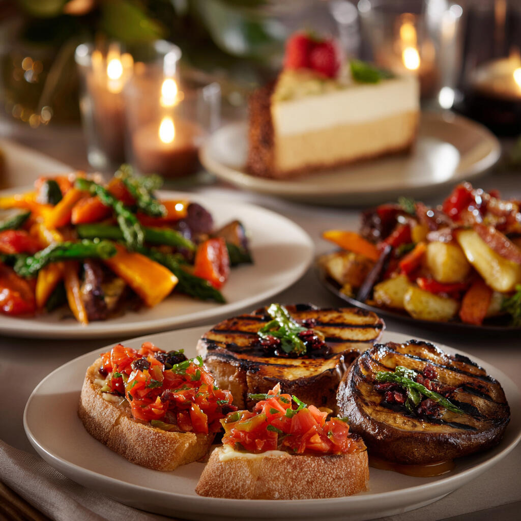 Served with chef-selected seasonal vegetablesDessertPlant-Based Cheesecake